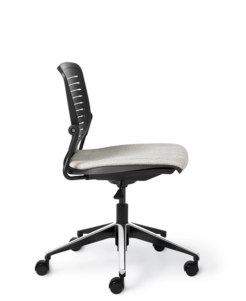 In capturing one of the coveted 2013 Ergo Expo Attendees’ Choice Awards, the OM5 Active Task Chair had to be amoungst the top 4 vote-getters as decided by well over 1,400 of the leading ergonomic thought-leaders in the country, as well as by many influential decision makers such as end-user facility, environmental health & safety, and purchasing personnel. The OM5 Series task chair has a one-piece nylon shell top, available in 7 shell colors with your choice of upholstered seat. Standard chair (without options) comes with no arms, carpet casters and 5″ black standard cylinder (see customizable options below). 12 Year Limited Warranty.