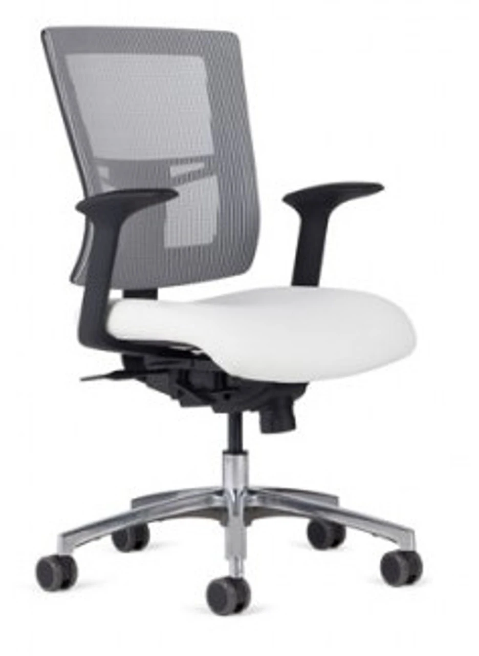 *Affirm Management Mid-Back shown in Starlight Silver Mesh, AR-11 arms, optional polished aluminum package, and dual color soft casters (additional charges apply- call us if you’d like an option not available here).Â