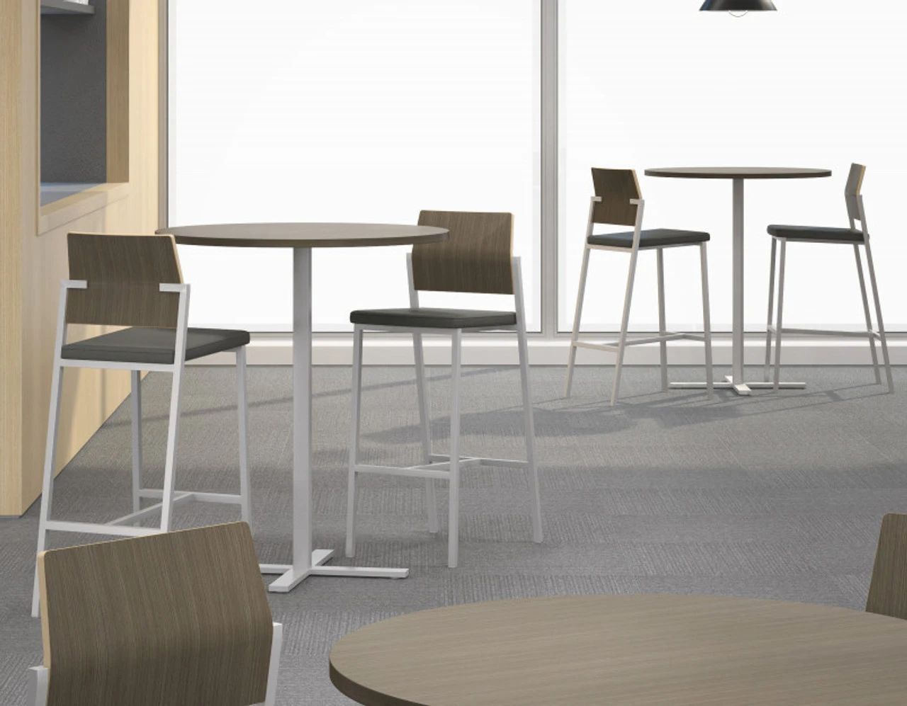 The NEW Avon series is a simple and modern design that caters not only to reception and guest areas but also cafe and hospitality areas! These Cafe Tables have high pressure laminate tops with matching knife edge OR edge-band (see options below). Perfect for healthcare contexts, collaborative and reception areas. Minimal Assembly Required.Â