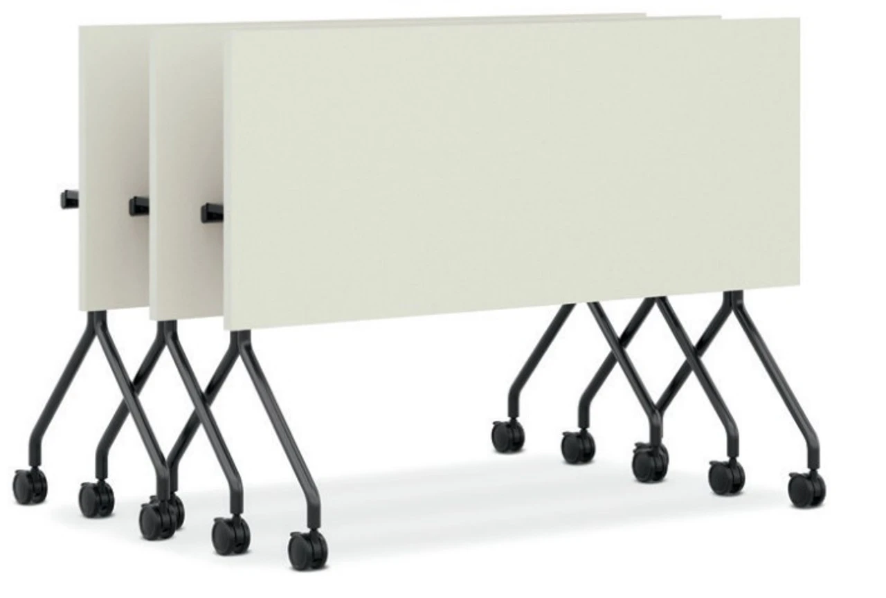 Perfect for settings like cafes, break rooms and breakout spaces, the Between nesting table has a sturdy flip base that allows it to be nested and stored easily. The 24″D x 60″W worksurface is made of scratch-, spill- and stain-resistant laminate. The sturdy base flips the worksurface vertically, saving space when not in use.Â