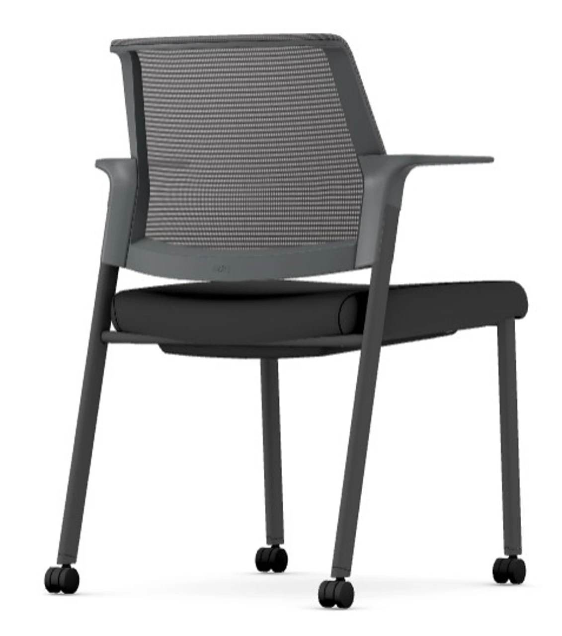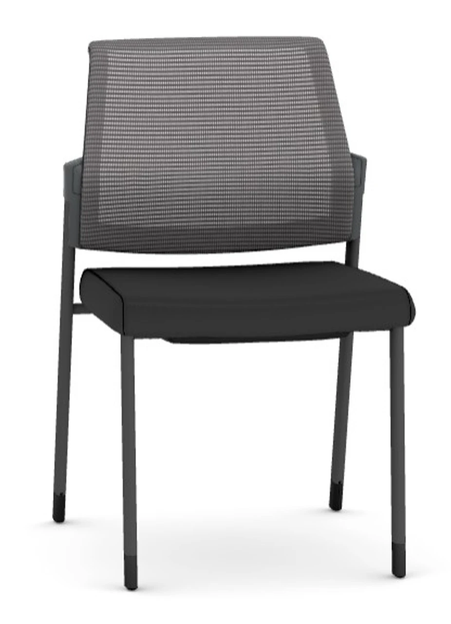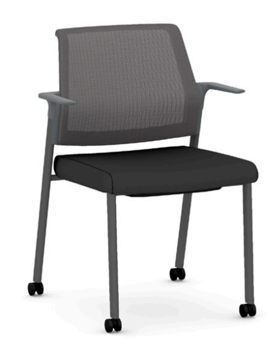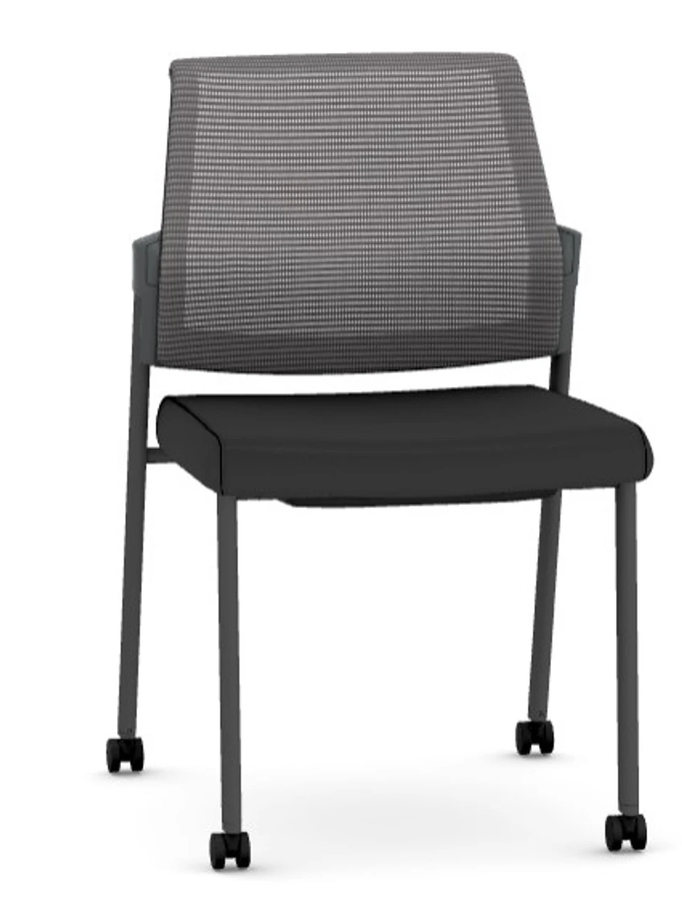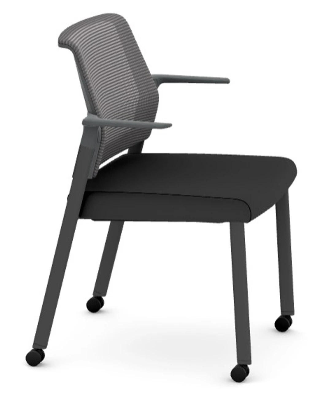The NEW Cipher Guest chair has a charcoal frame with mesh back to keep you cool. It has fixed arms for support and is at home in the office, meeting room or reception area. It comes with a black hard caster or glides.