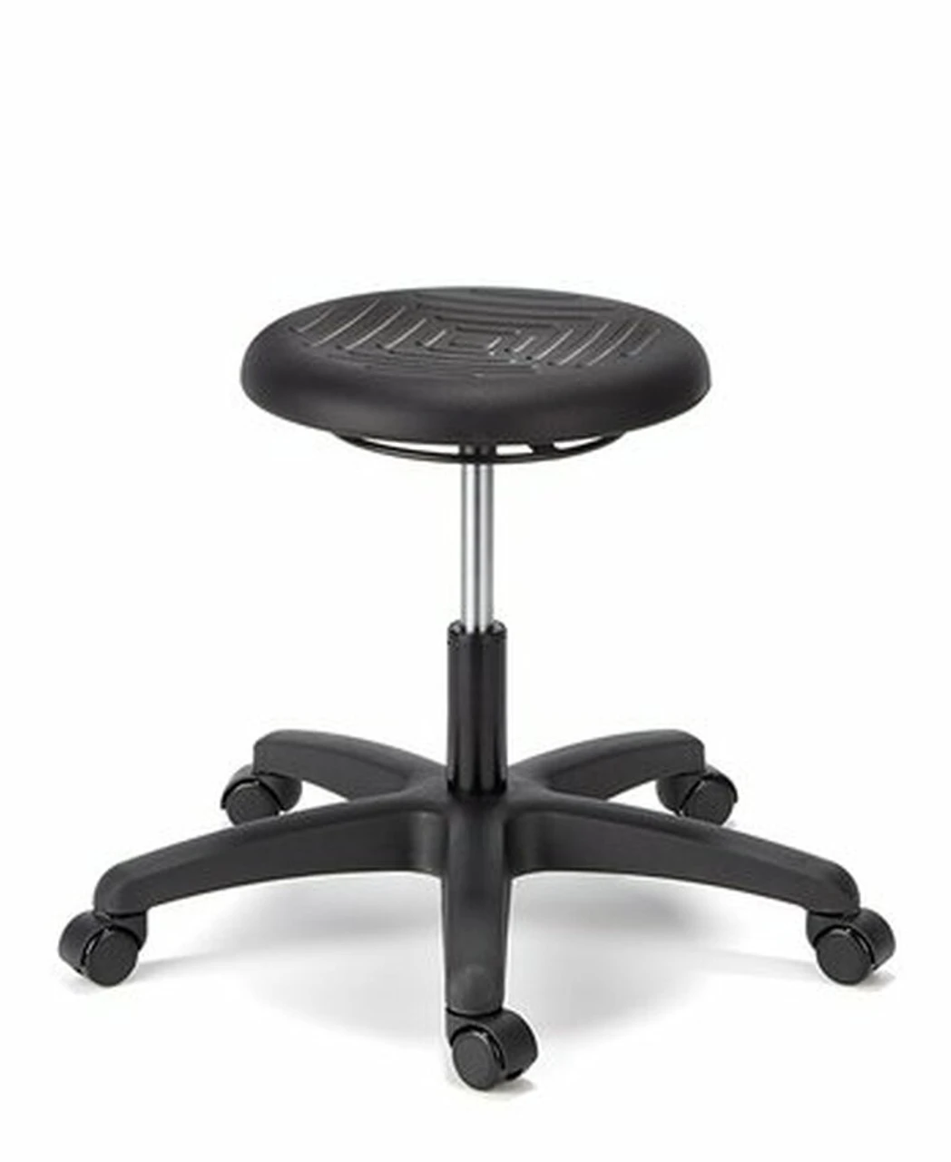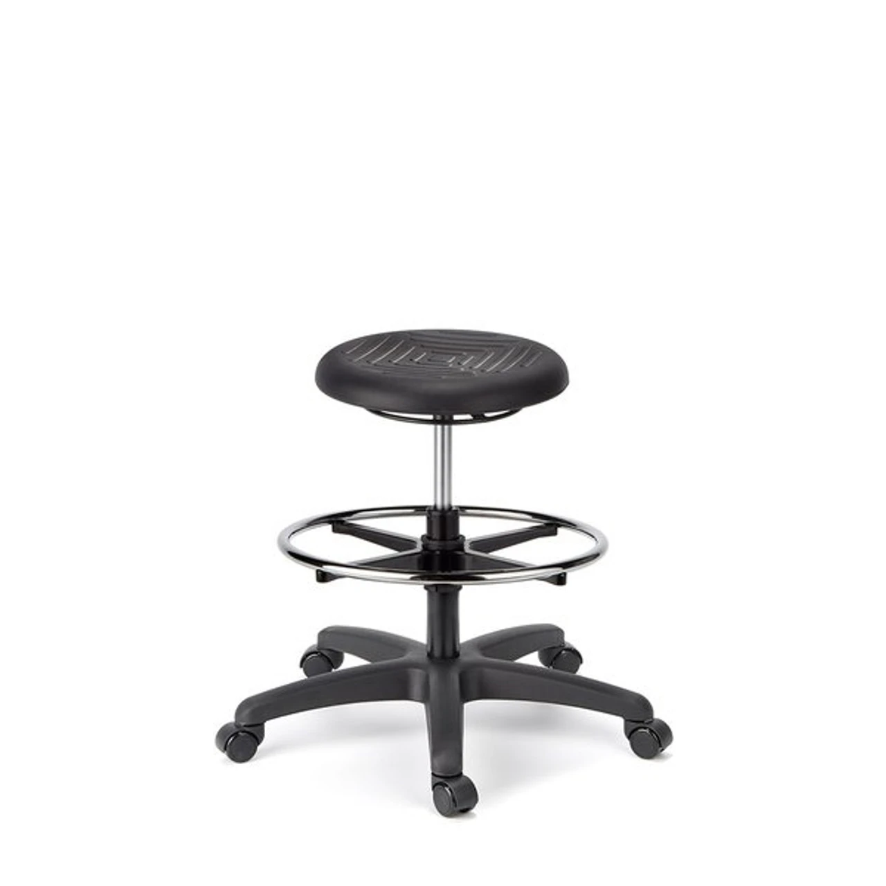 Cramer designs and engineers Med-Tech seating for – laboratories, medical offices, hospitals, and research facilities. Labs and spaces that require rigorous technical standards for comfort, cleanliness and durability, turn to Cramer for their expertise in clean design and ergonomic comfort. Rhino™ Basic Round Stool has a self-skinned black urethane seat that resists punctures, tears, and spills. It is easily cleaned and is a great seating solution for higher education, labs and technical workspaces. This model is also available in three heights, some with hand height mechanism and some with foot control. Options include polished aluminum base, and various caster types.