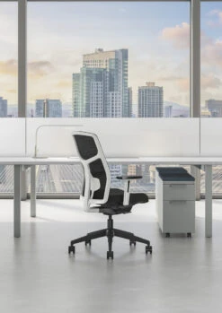 Making great use of technology for the utmost comfort, the new AIS Devens offers easy to use features and a weight-balanced synchro-tilt with a seat slider, so users can quickly adjust without compromising comfort. This quickship version has a grey upholstered seat, standard grey frame and graphite mesh back. Ships Free in 5 Business Days. See also the Devens Grey Frame Special Order version.