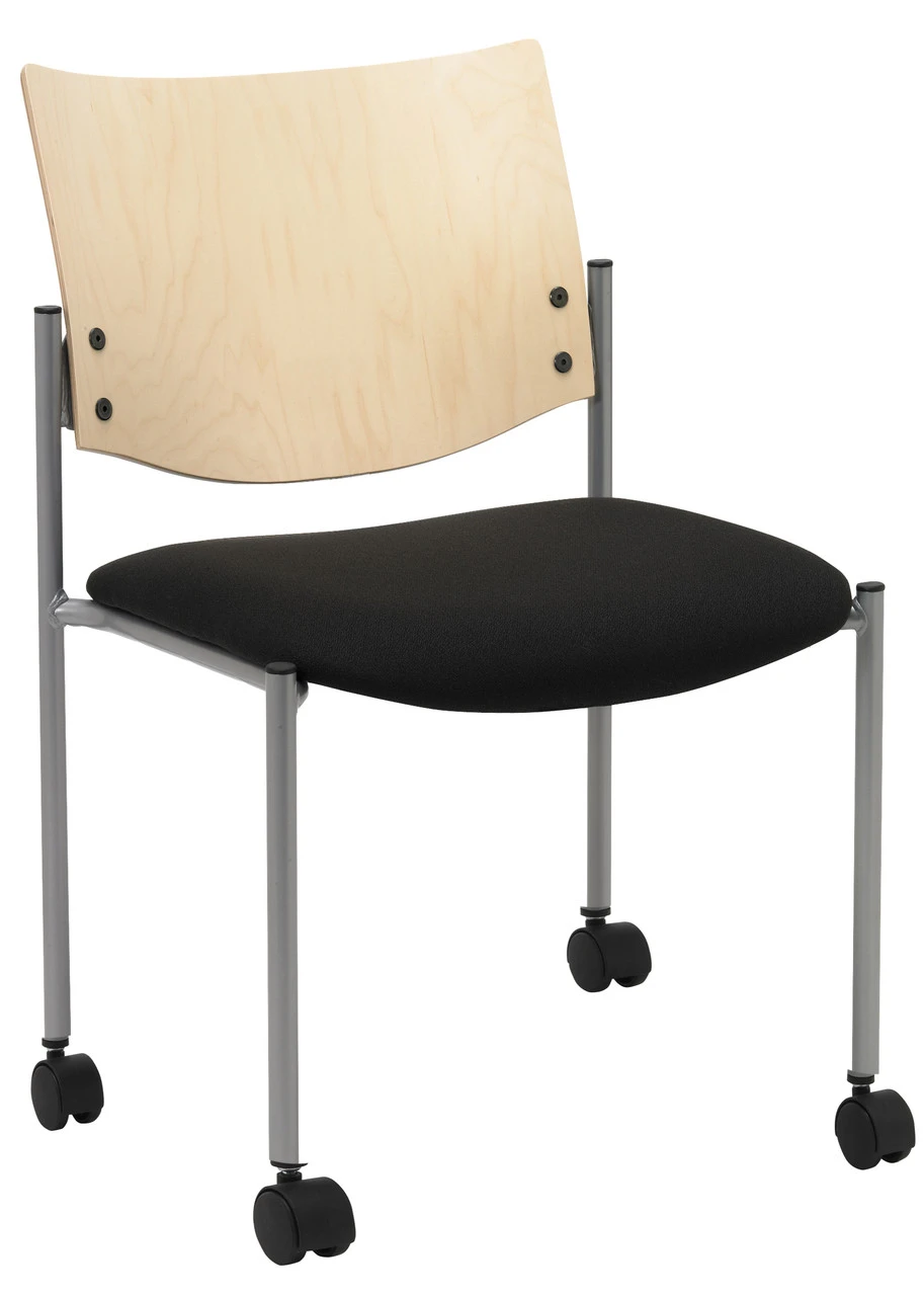 This Evolve Guest chair by kfi is a mutli-purpose chair perfect for side and guest applications. This version comes with an upholstered seat, an attractive wood stained back, casters and a 16 gauge tubular frame in black or silver. This versatile chair is at home in training areas, cafeterias or as guest seating. *An order of more than a dozen chairs may increase lead time!