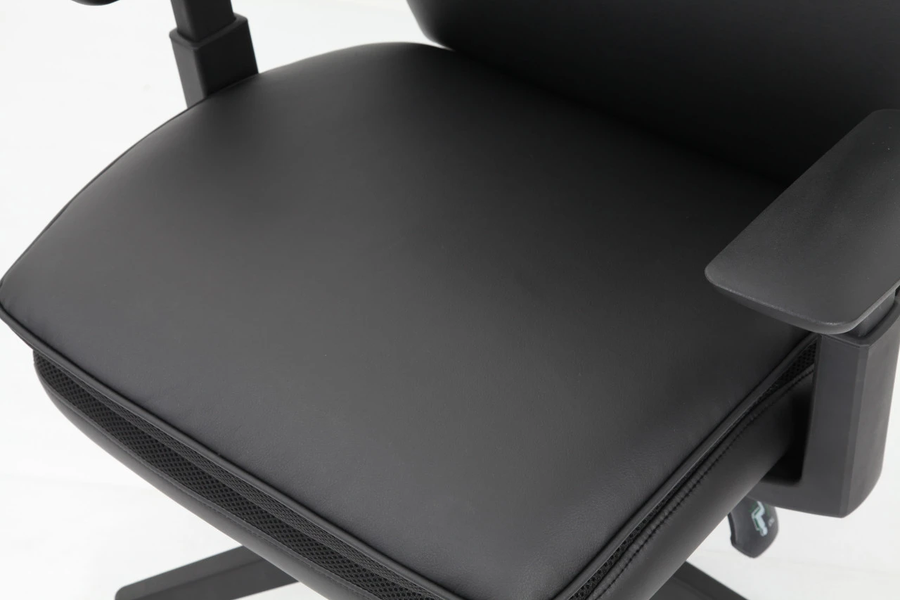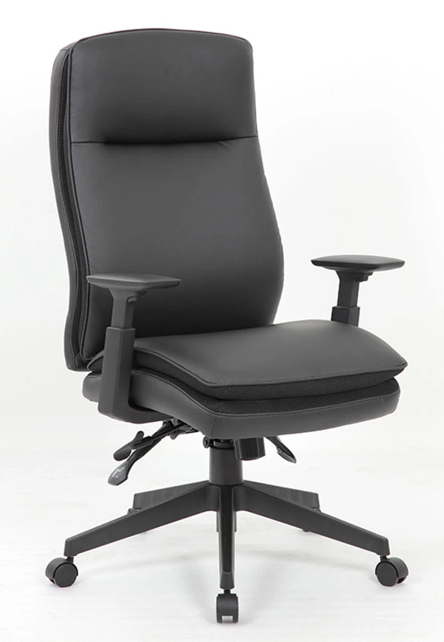 This OfficeChairs USA endorsed chair has a leather like Soft-touch upholstery will breathe and is easily cleaned. High density foam offers good all-round support and has a natural lumbar curve molded in to support your lower back. Adjustable height soft cap padded arms are supportive and easy on your furniture. 6 Year Factory Limited Warranty. Infinite recline lock. Chair has many sought after ergonomic options at an incredibly affordable price. Chair ticks off both the better ergonomic and executive boxes.