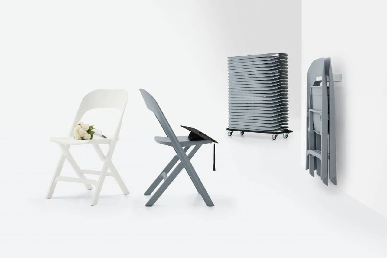 - Glass filled polymer folding chair in Alloy or Milk finishes