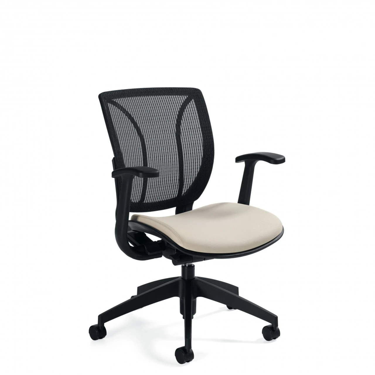 The Roma Medium Mesh Back Task Chair by Global offers a breathable back while maintaining ergonomic back support and spine alignment. Arms and arm caps are constructed of durable fiberglass reinforced Nylon, fixed height with a special cap coating that feels soft and warm to the touch.Â