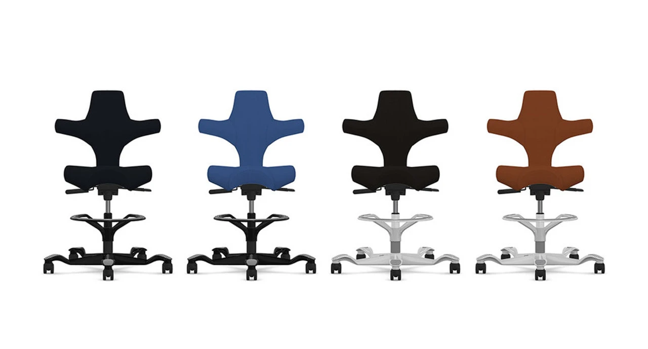 The HAG Capisco saddle chair was awarded “the classic award for design excellence” by the Norwegian Design Council in 2001. The rest is history! The HAG Capisco office saddle chair was inspired by the dynamic seating posture of the horse rider. No one sits as actively as an equestrian must – using their core to stay balanced while in constant motion. Peter Opsvik and HÃ…G successfully recreated this ideal seating position for a chair that keeps one ‘active’. You can feel the dynamics as soon as you sit down on this saddle stool. Many hundreds of thousands of HAG Capisco office saddle chairs have been sold worldwide since Capisco’s inception. It is by far, the most interesting and renowned active seat that we offer. The HAG Capisco saddle seat is a leader in the new dynamic sitting revolution. View the fabric selector button above to choose upholstery swatches! To view larger images that show the texture of each fabric scroll down to the image below. Capisco chairs come standard with carpet casters.Â
