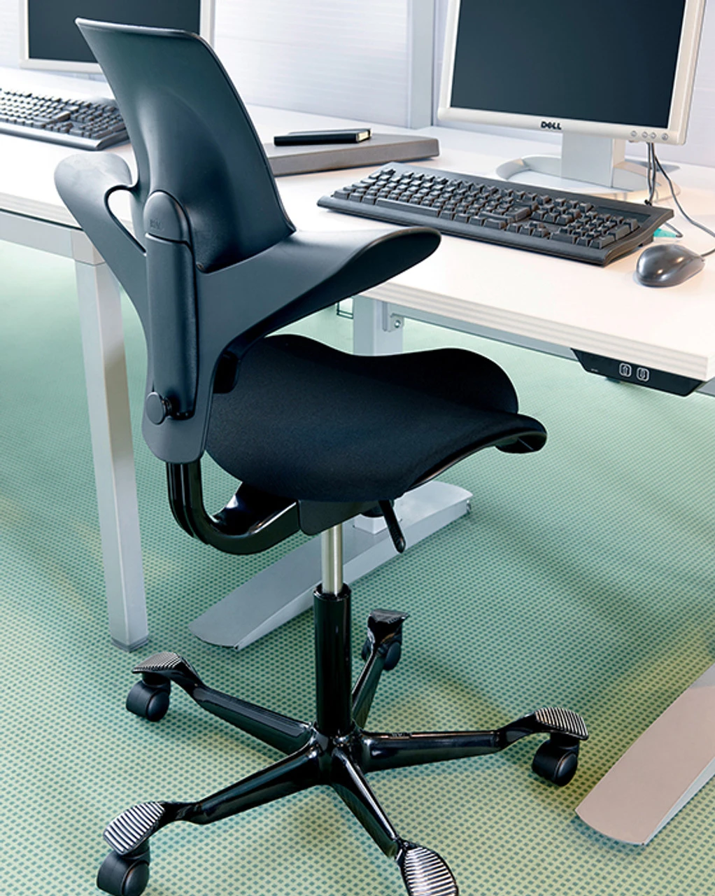 This version of the HAG Capisco Puls chair is configured with standard ship fabrics that ship in 15 days. If you don’t see a fabric you like, please also view the Capisco 8020 Express version here, which has different fabric options.