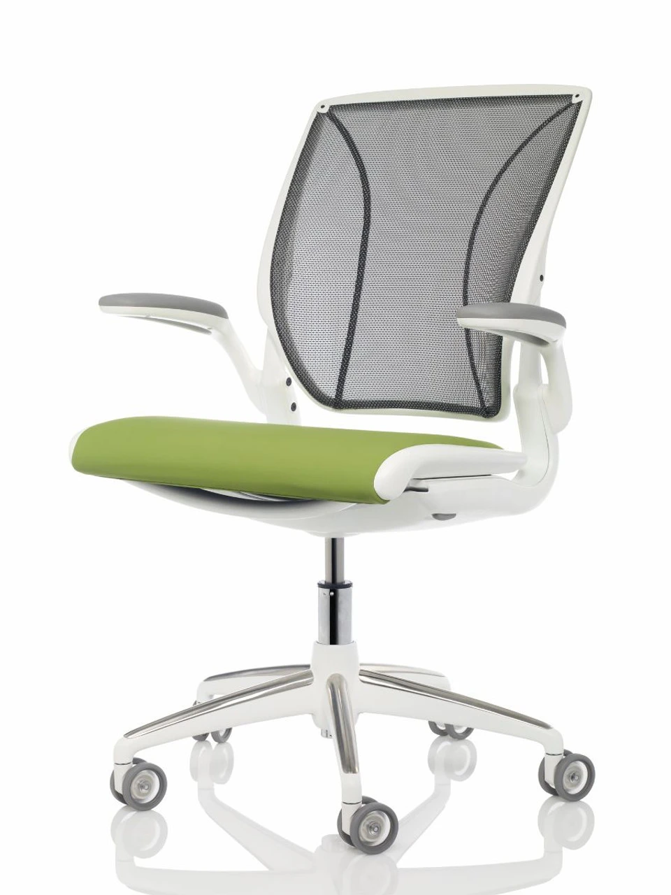 - Sitting on Air: A truly light-weight chair, the Humanscale Diffrient World chair replaces the standard cushion seat with a low-abrasion, non-stretch mesh. To maximize comfort, Diffrient eliminated the front edge of the chair, solving a perennial problem of hard edges placing pressure on the knees and contact stress behind the thighs, allowing long-term comfort and total supports for every sitter.