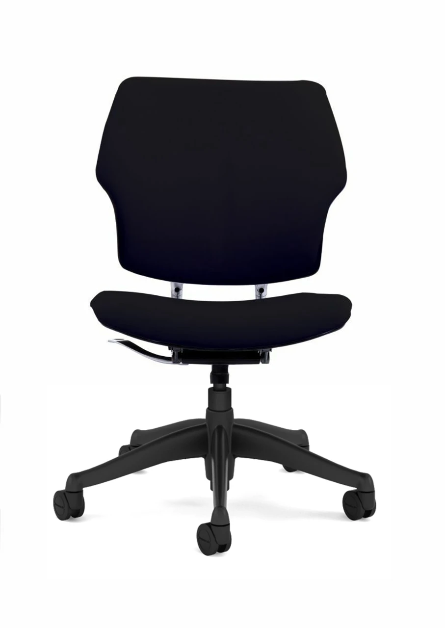 Casters – The standard caster on the Humanscale Freedom chair is the carpet style twin disc. You may also select a ‘Soft Caster’ for hard floor surfaces as well as stationary glides (if you do not want your chair moving around) or braking casters that lock when you are in the Freedom task chair.