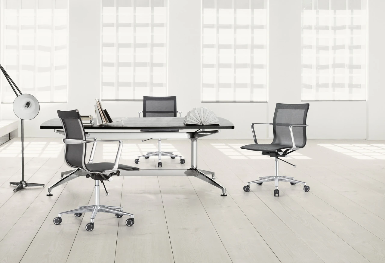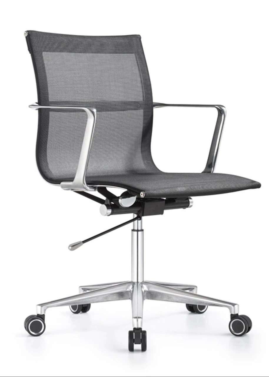 Hands down one of our most popular chairs for conference, management or executive applications. Readily available from both our west and east coast warehouses, we can get these out the door in as little as 24 hours! Likely you have seen numerous renditions of this chair both from the extreme high end down to the chintzy ‘knock offs’ done in vinyl or low grade mesh materials. Pay a little more and get a lot more! A serious model designed to stand up in commercial contract settings. This chair has a medium to firm seat feel.