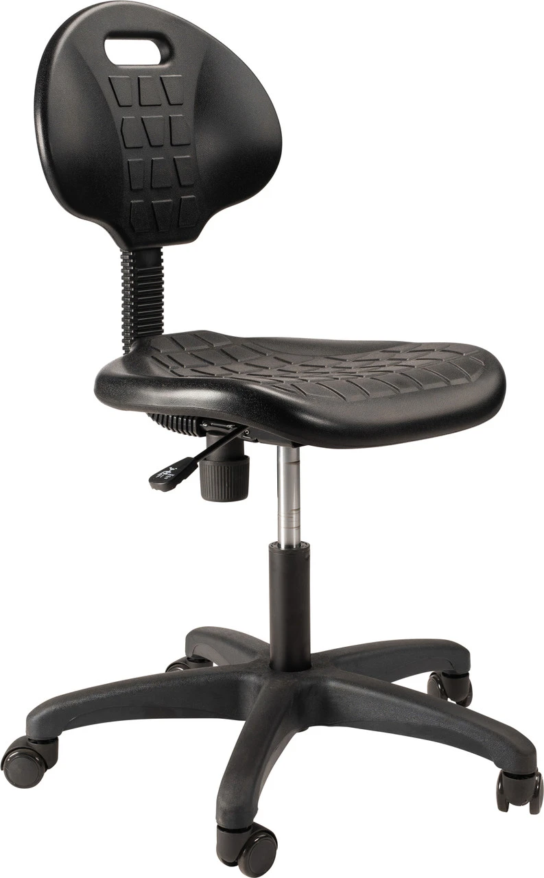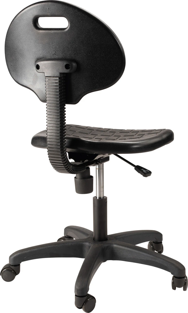 - Polyurethane lab chair that is resistant to chemicals and punctures and cleans easily