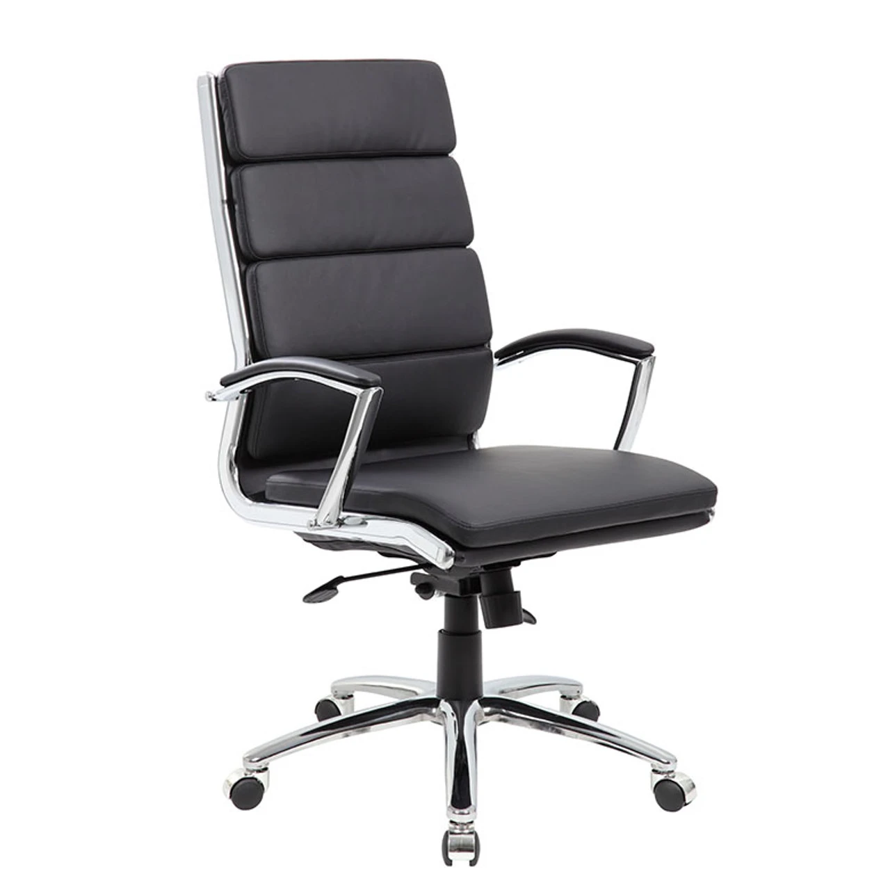 Upholstered with ultra-soft, durable and breathable leather like urethane, this executive chair is both durable and stylish. It is built to last with a heavy duty paddle spring tilt mechanism and a large chrome base for added stability. Available in MAS Certified Green upholstery.