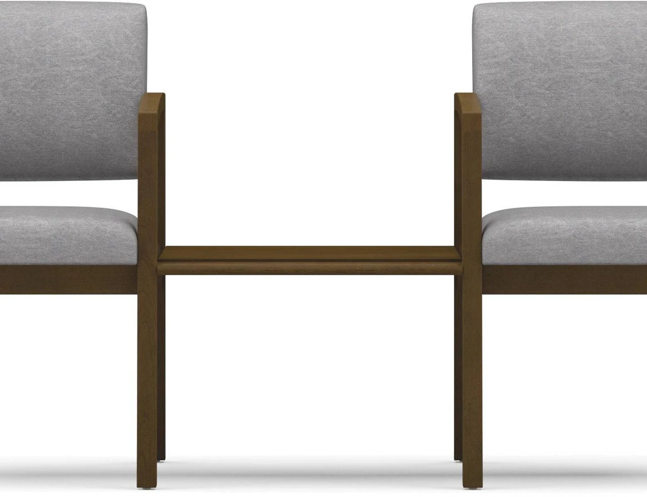 The Lenox Solid Hardwood Connecting Center Table by Lesro is part of a series of reception furniture that offers unique customizability to fit into any reception area. This product allows a table top to be placed in between two Lenox series reception chairs. The table is made out of solid hardwood. Pictures of these finishes are in the description below. These hardwood finishes match the other finishes from the Lenox series of reception furniture. The top of this product features a solid hardwood top that will match the wood finish you pick in the option box above. Another version of this table is offered with a black laminate top instead of a solid hardwood top.Â