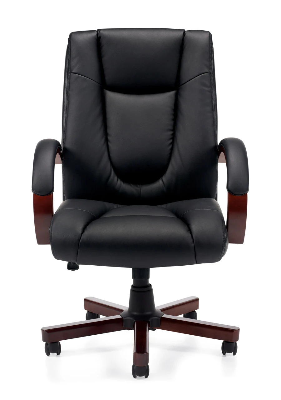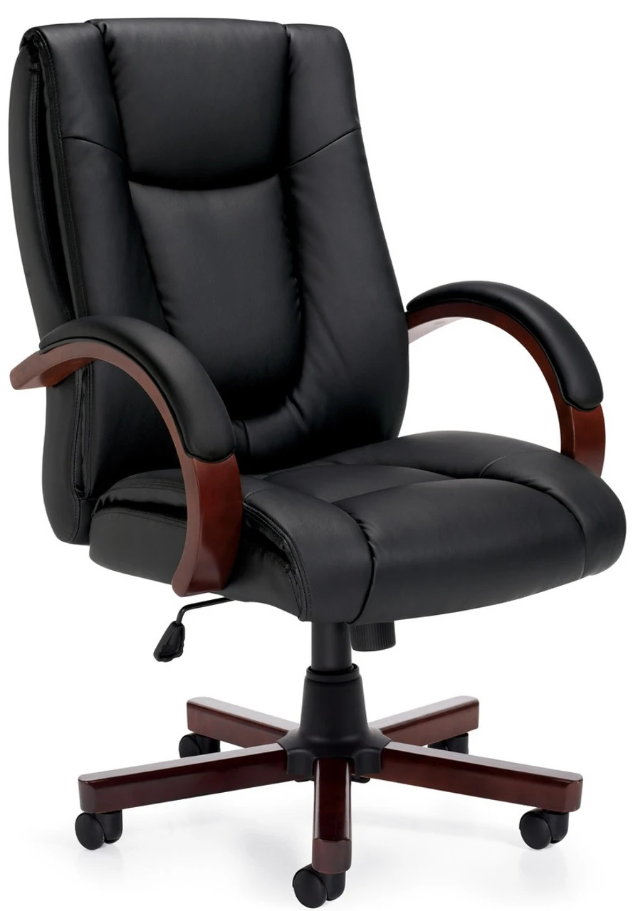 This OTG executive swivel tilt chair has accented Cordovan Mahogany wood trim on the arm supports and the base. The arm height on this tasker, works best for taller framed sitters.Ā This chair is upholstered in Globals Luxhide leather which is a hybrid leather material that yields a very smooth hand and great surface consistency. Easy to clean and it breathes! This chair carries the OTG by Global factory warranty (click on the tab below).