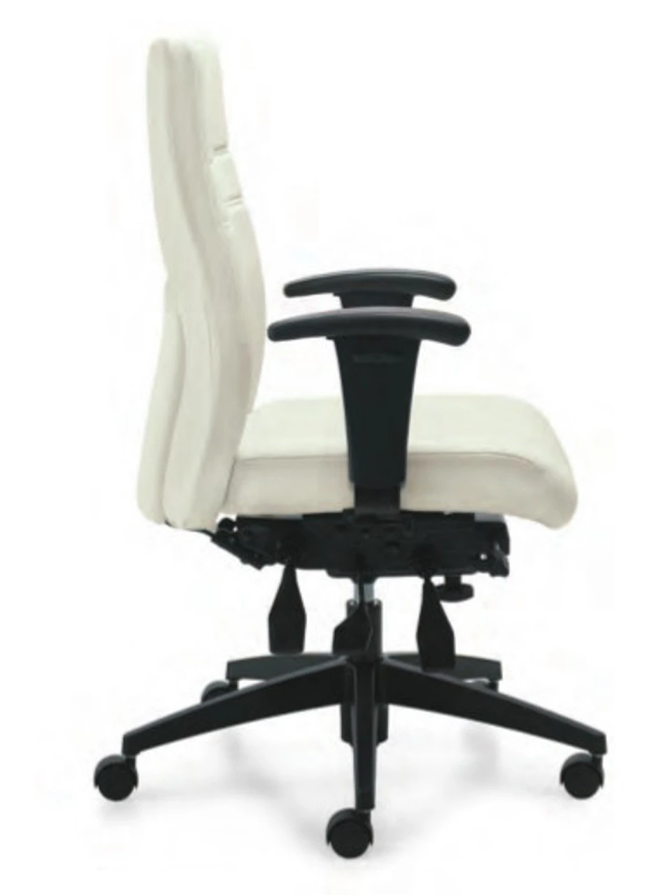 This NEW OTG Multi-tilter is packed with ergonomic features and it’s also a looker! Upholstered in fabric or Luxhide leather which is a hybrid leather material that yields a very smooth hand and great surface consistency and makes it easy to clean! It has a curved back and adjusting arm rests. This chair carries the OTG by Global factory warranty (click on the tab below).Â