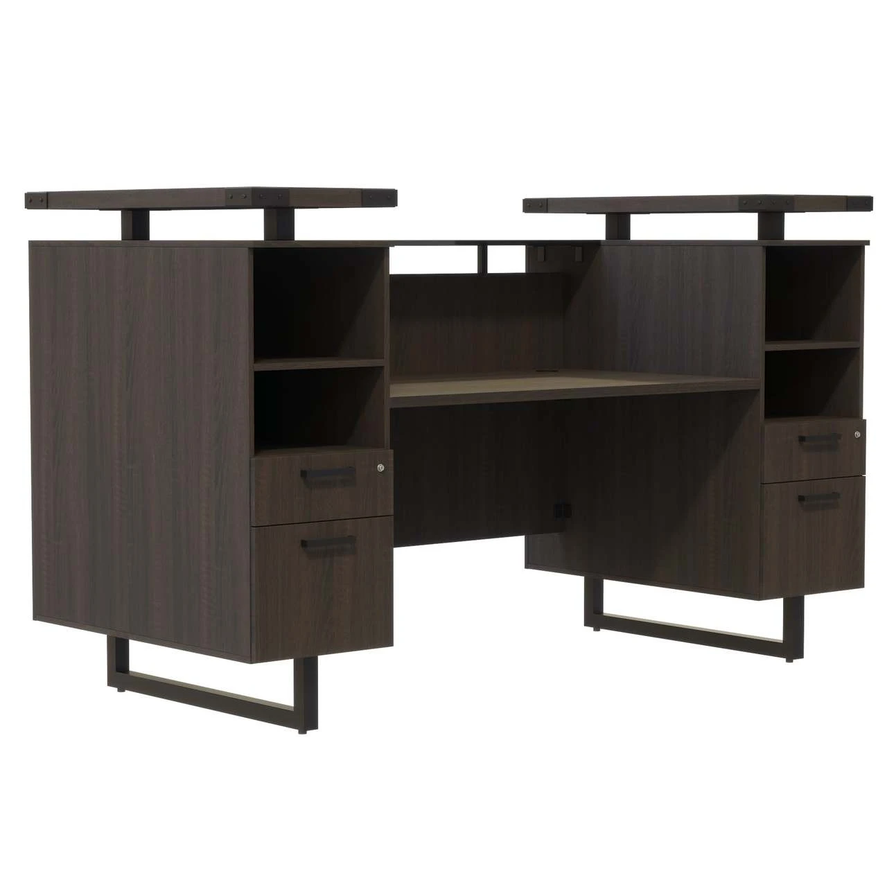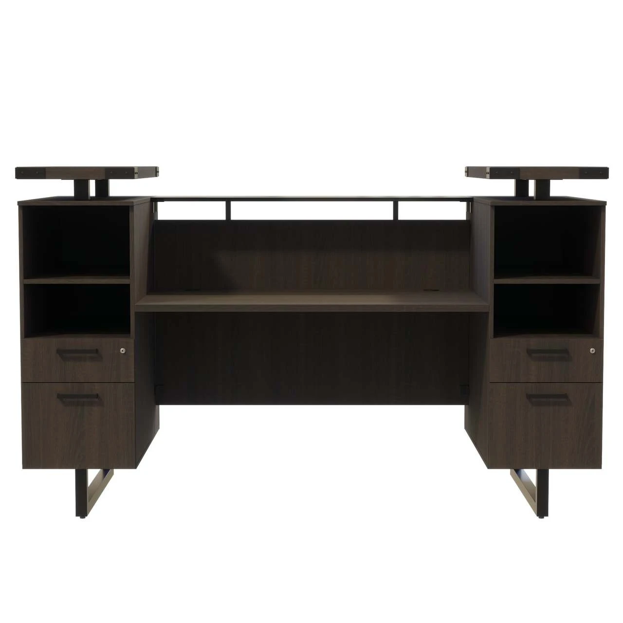 Features: Shelf/box/file pedestals; Grommets come standard; Glass reception counter