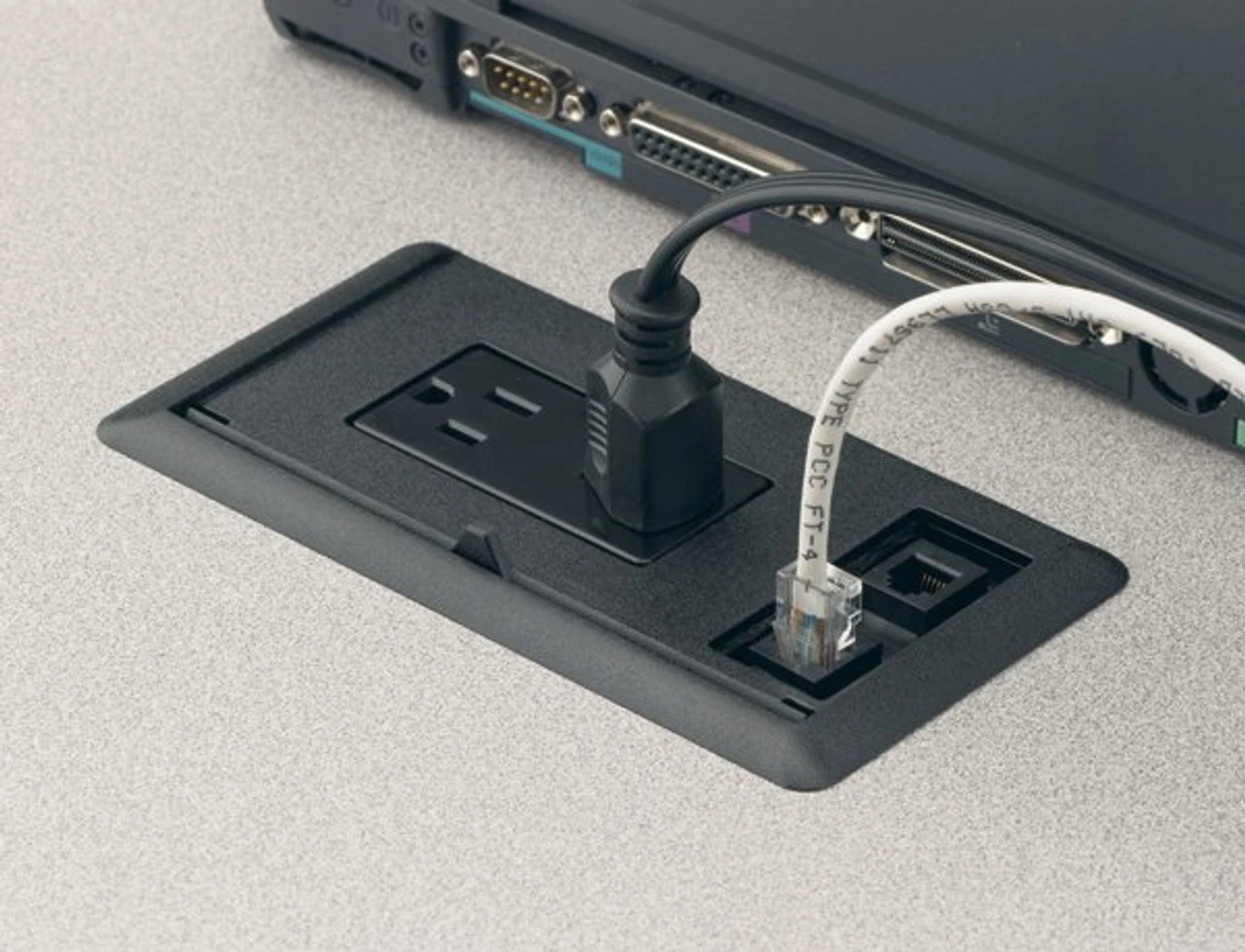 SPM Module includes 2 power outlets and 2 knock out (open) data ports; 6’ power cord; Available in Black Only