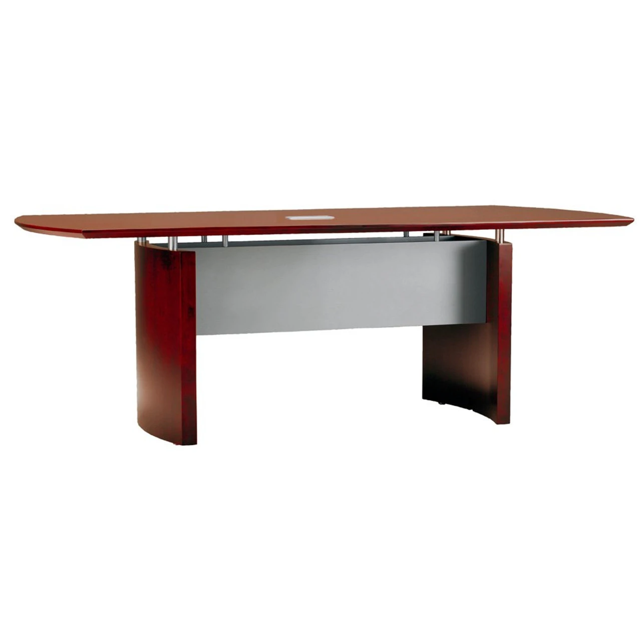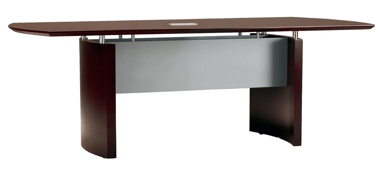 The Napoli Wood Veneer 6′ Conference Table by Mayline features Italian-influenced, sophisticated styling for business or home office. The table features elegant lines with excellent durability, made from AA-grade select North American hardwood veneers throughout. Available in 3 veneer finishes. Also featured on this table is one grommet hole 2.75″ by 6″ to insert a power outlet or snake other wires up through the table. Optional power modules to insert into these cut-outs are shown below. Easy to assemble, shipped in several pieces, two legs, one 6′ table top and two modesty panels.Â