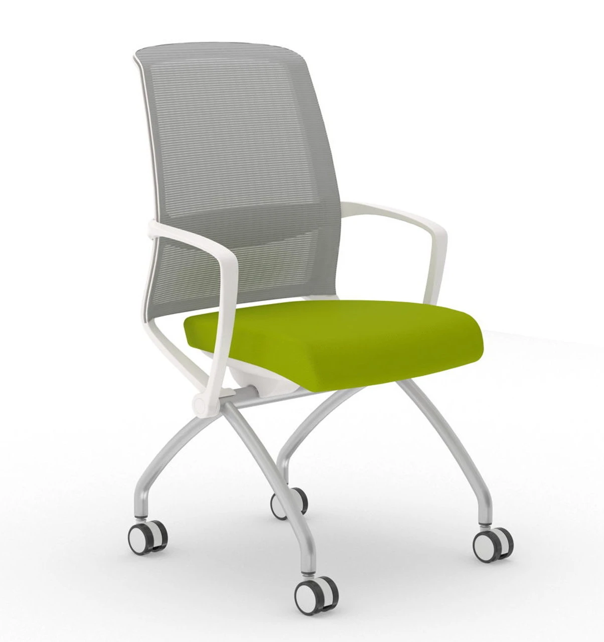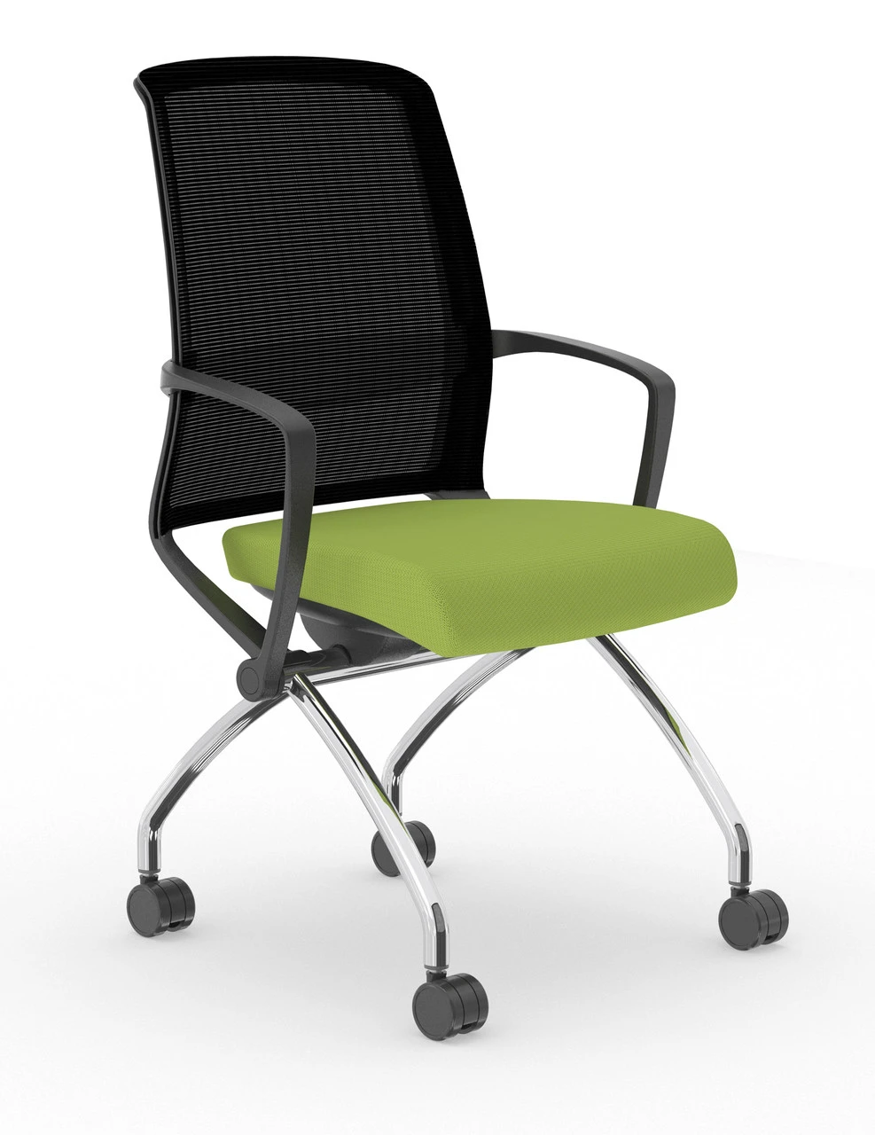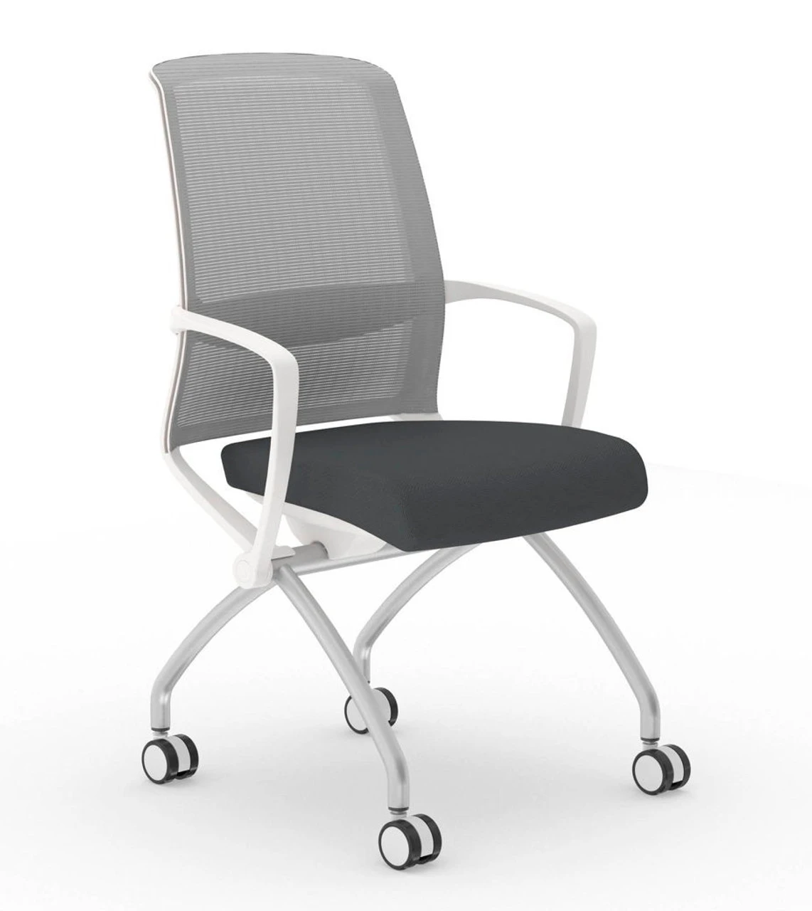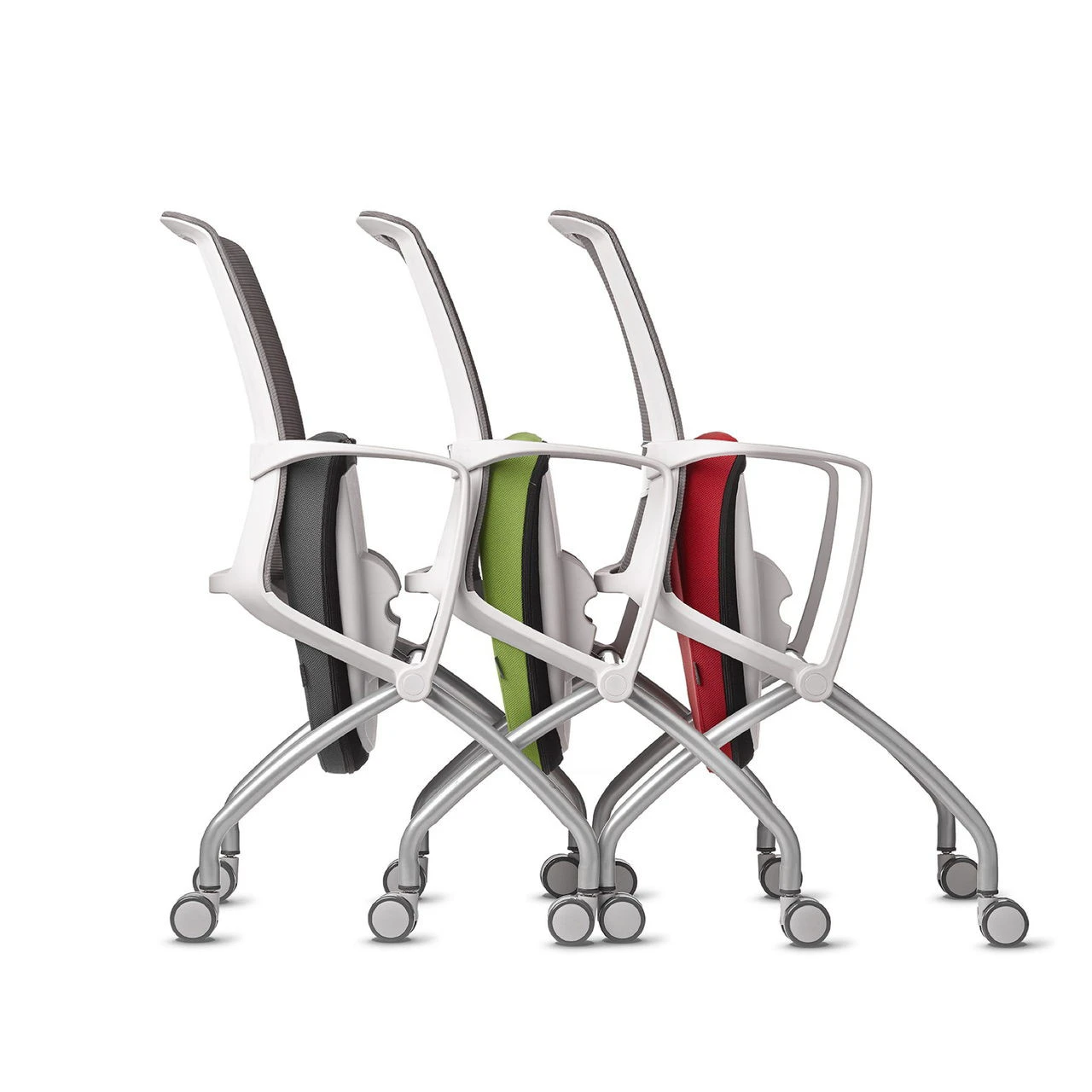 AMQ has done it again with this stunningly contemporary and versatile nesting mesh stacking chair! Perfect as a conference room chair, training seminar seat, or any transitional group context where mobility, easy storage and clean-up is required. The Tizu mesh chair has a supportive mesh back, soft casters, sturdy arms, and plush cushion seats that have washable color covers, which are easily removable for ease of cleaning. This nesting chair with casters is available with a black or off white frame. AMQ factory warranty covers all parts for 10 Years.