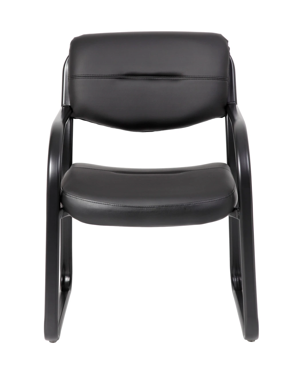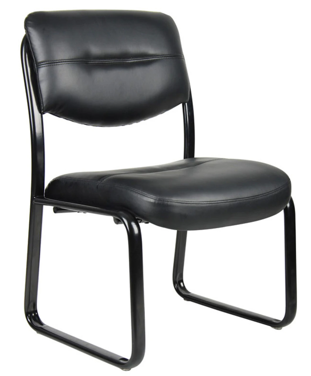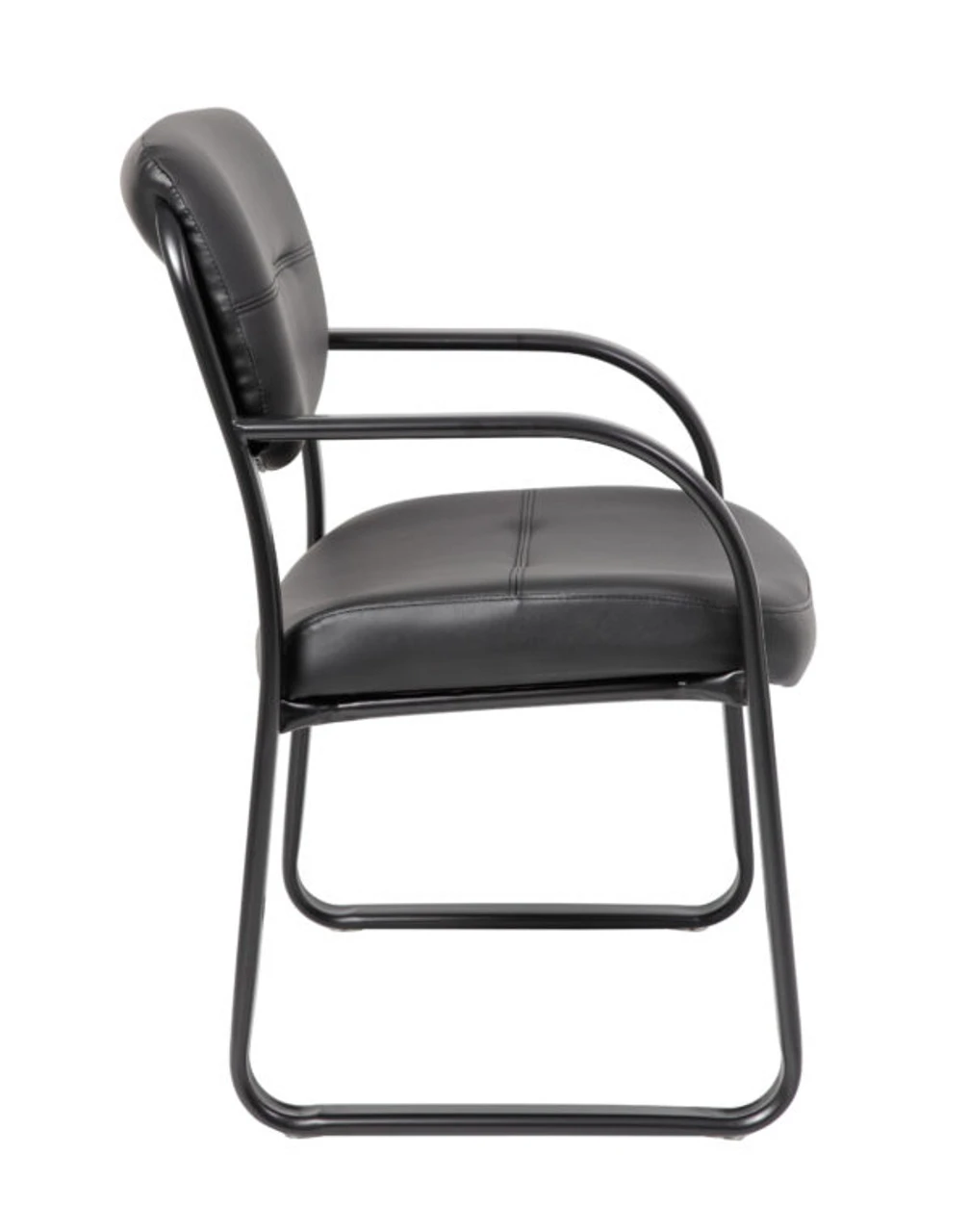 Affordable sleek Guest Chair designed for guest seating in both private offices, reception areas or common areas. Black easy to clean leatherette vinyl. MAS Certified Green for better health. Above average weight capacity of 275 lbs.