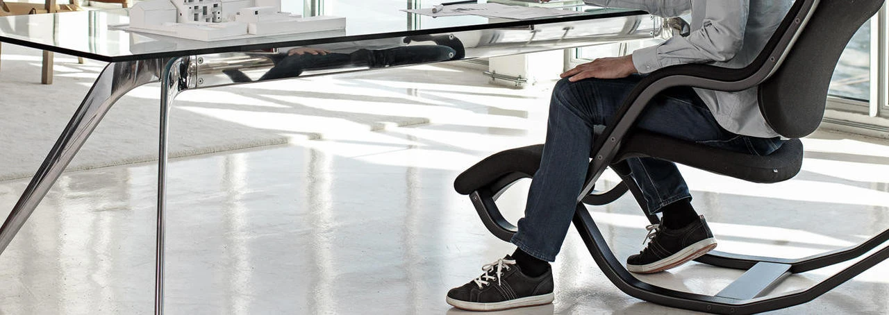 Encourages a neutral spine. When upright, the chair tilts the pelvis forward, encouraging an upright, neutral spine, which activates and strengthens abdominal and back muscles.