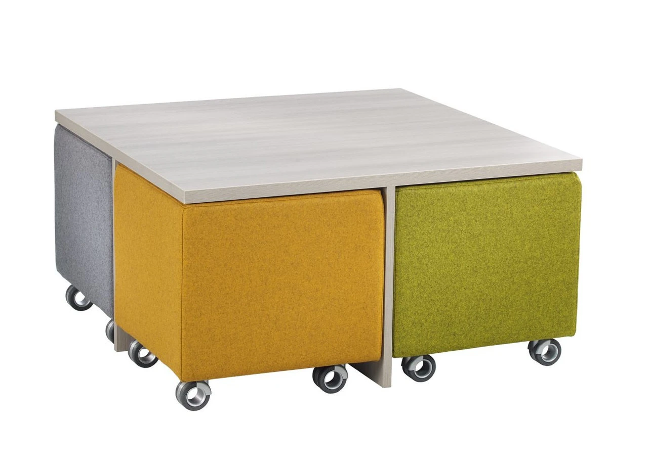 The NEW Volker Cube, by AIS is a very original modular piece that nests when not in use, creating a minimal “mother” cube that saves space and has a clean modern appeal.Ā When in use, the seating cubes are mobile and oh so cool for collaborative spaces, waiting areas and educational environments!Ā The Volker office coffee table is covered in your choice of laminate and the cube seats are fully upholstered and on casters.Ā You can match the upholstery and laminate to the LB Lounge Series, creating a complete environment! If you’d like to buy extra Volker Cube Seats go here.Ā Ships in 15 Business days.Ā